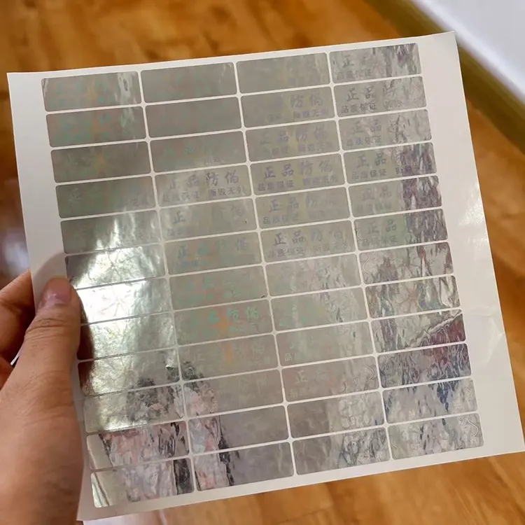 2. Лазерна лазерна лейбл протизаплідних засобів:Зроблено з використанням технології виготовлення пластини лазерної кольору та технології реплікації. На етикетці представлені унікальні лазерні візерунки, які можна ідентифікувати як справжню або підроблену, спостерігаючи за неозброєним оком або використовуючи збільшуючий пристрій для перегляду внутрішніх гравірованих функцій. Шаблони різних марок лазерних лазерних етикетків проти конфавження різні ,, і вони можуть бути налаштовані.