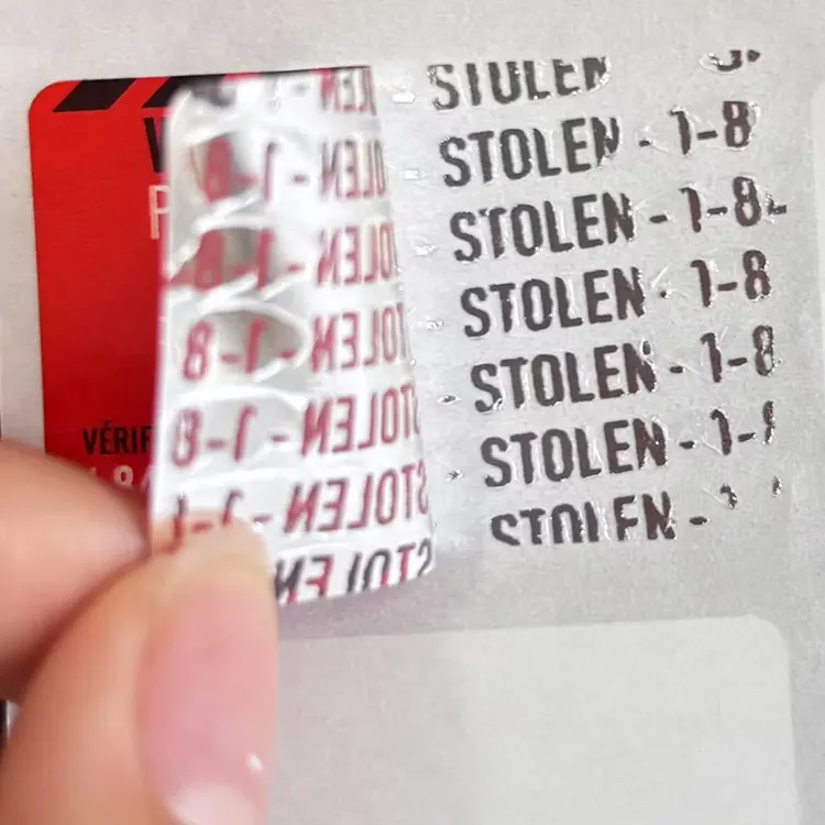5. Неміцний лейбл анти-Counterfifing: Зроблено з крихкого паперового матеріалу. Як тільки етикетка буде відкрита , вона буде пошкоджена , і етикетка розлучатиметься на нерегулярні невеликі шматочки , ускладнює відновлення та не може бути повністю повторно повторне , фактично запобігаючи копіювальній етикетці та повторно використаній.
