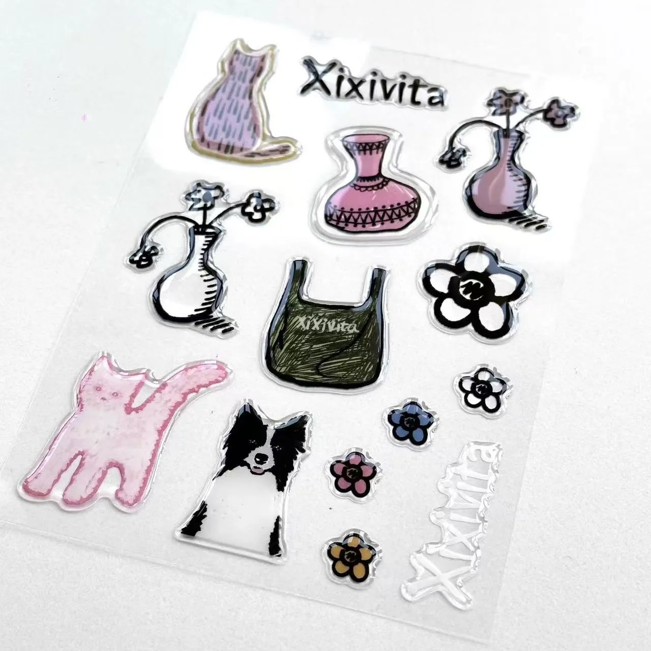 Визначальною особливістю епоксидних наклейок мультфільму є піднята, 3D -епоксидна наклейка, створена чітким епоксидним покриттям смоли. Цей тривимірний ефект додає глибини та тактильної привабливості.