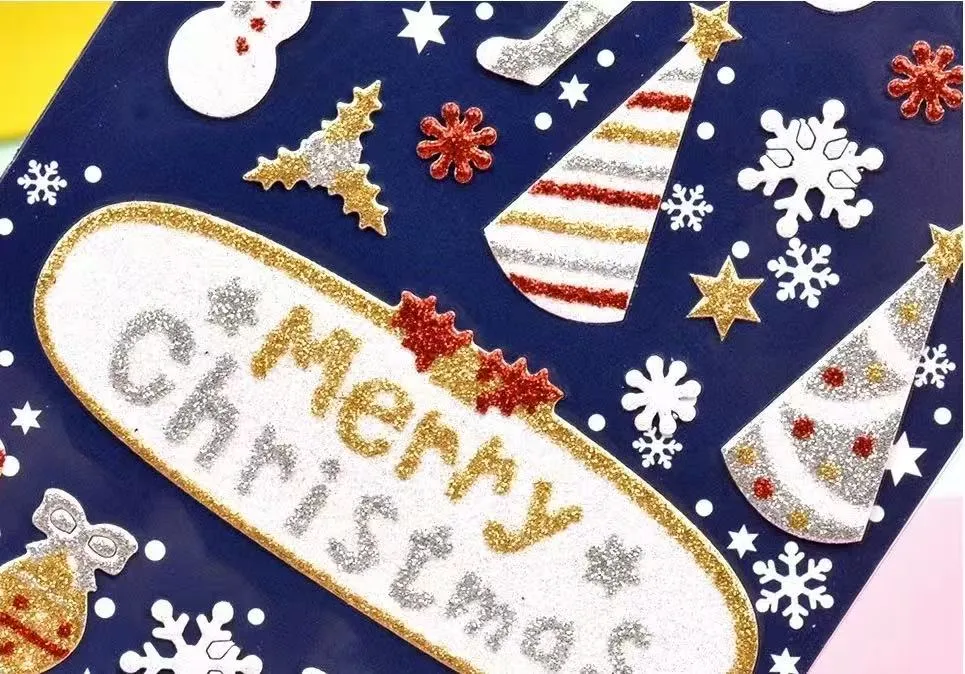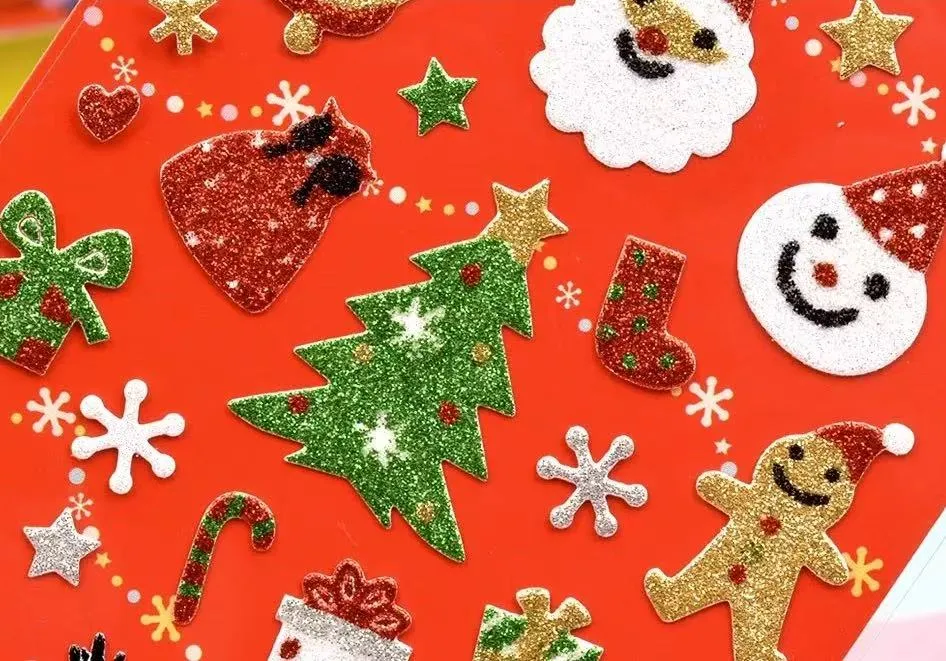 Наклейки на різдвяні блиск можуть досягти відмінної адгезії на різних гладких поверхнях, таких як пластик, скло, метал та папір.