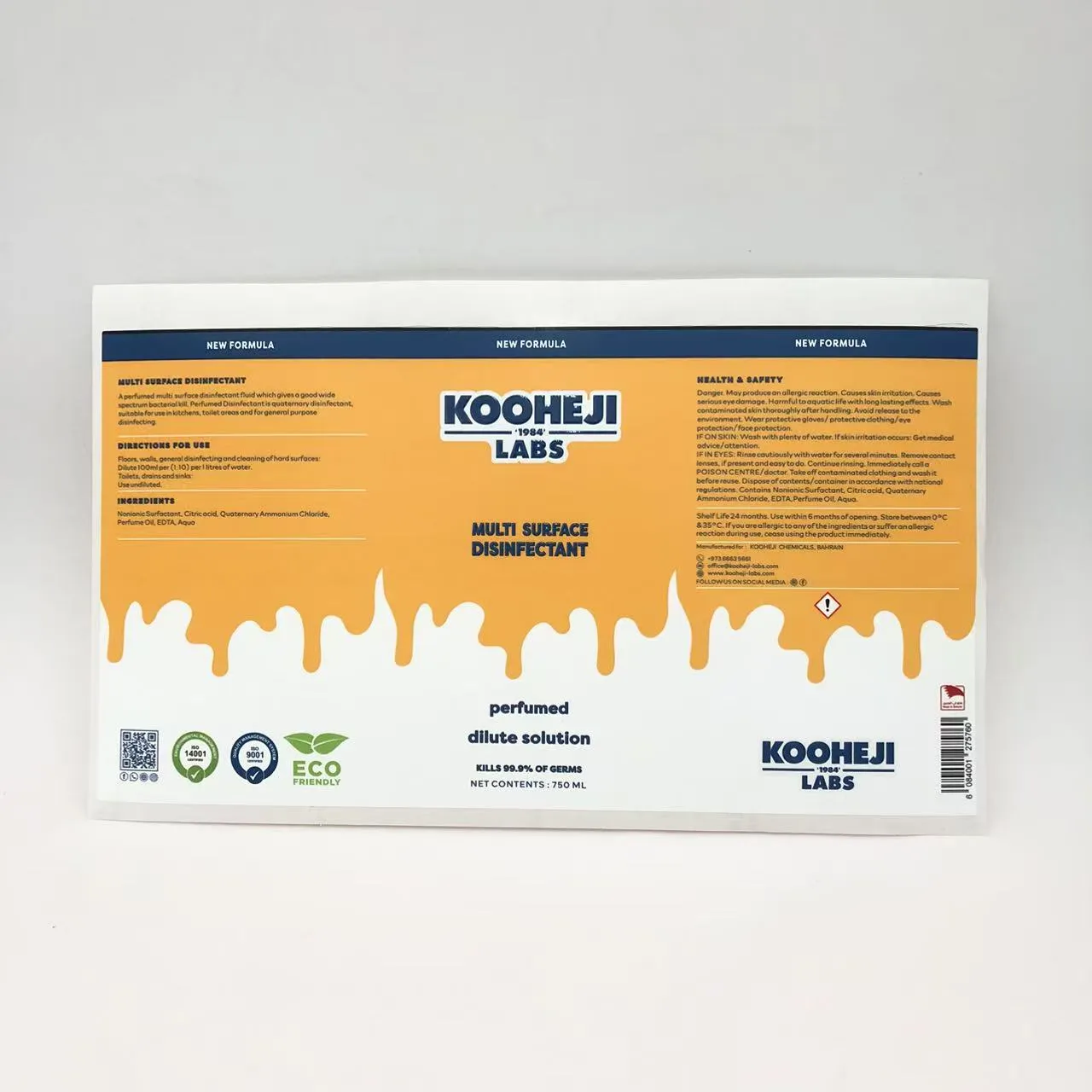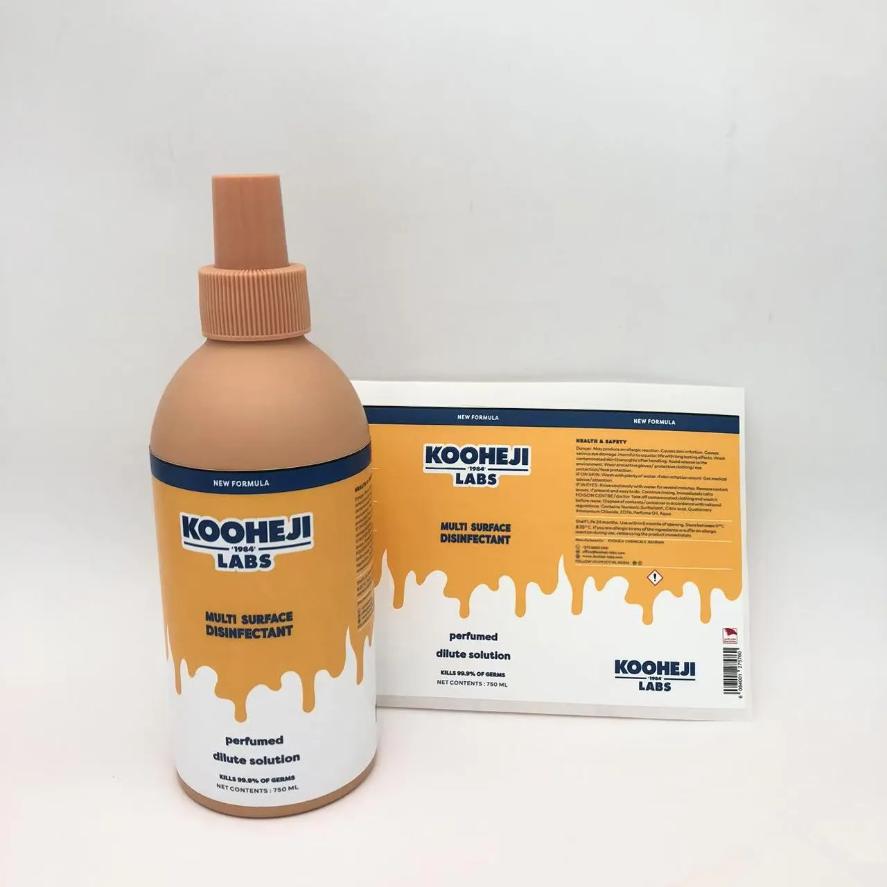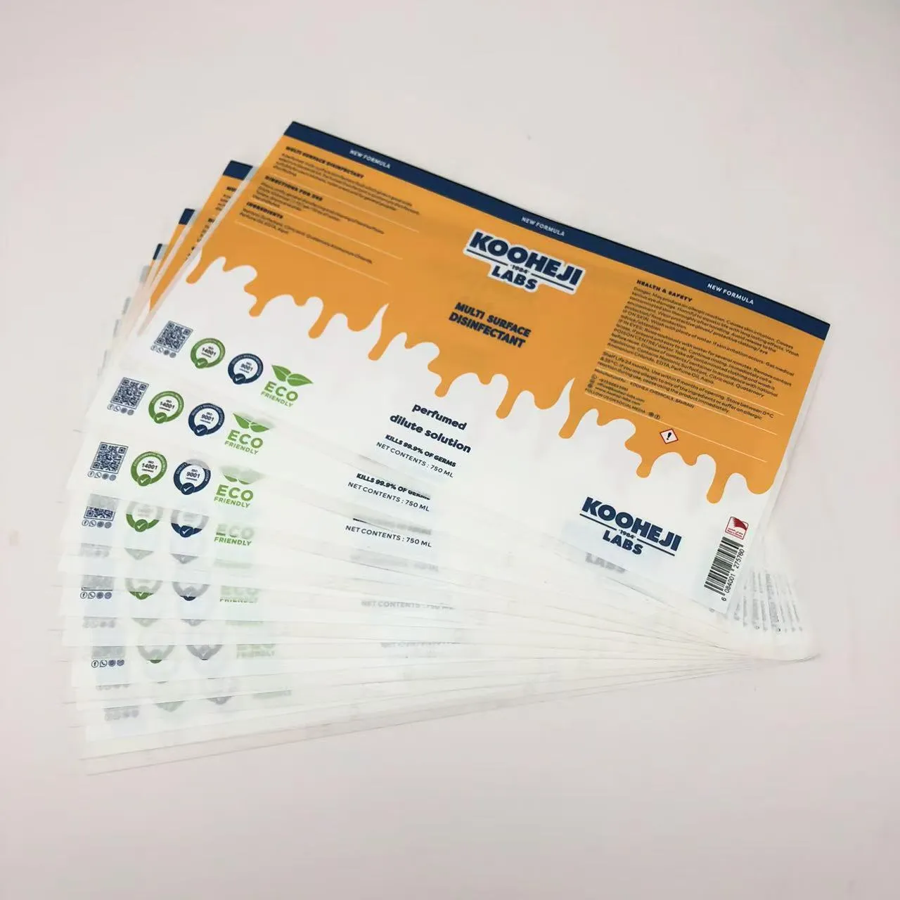 JOJO Packглибоко займається персоналізацією етикеток упаковки дезінфікуючих пляшок, ми знайомі з вимогами до матеріалів і стандартами безпеки дезінфікуючих засобів у медичних, побутових, комерційних і промислових сферах, гарантуючи, що індивідуальні етикетки повністю адаптуються до жорстких умов використання.