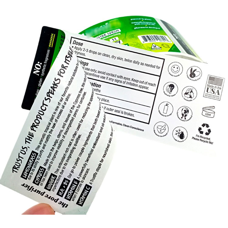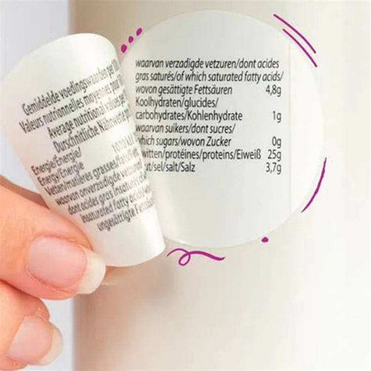 Харчові багатошарові етикеткиможе містити багато інформації на невеликій площі, дозволяючи вам максимізувати вплив вашого бренду. Ці універсальні етикетки пропонують багато можливостей для дизайну. У етикетках буклетів ми можемо використовувати різні комбінації кольорів, матеріалів і варіантів друку, щоб створити будь-який вигляд і відчуття. Ми можемо зробити їх знімними, щоб їх можна було читати з будь-якого боку.