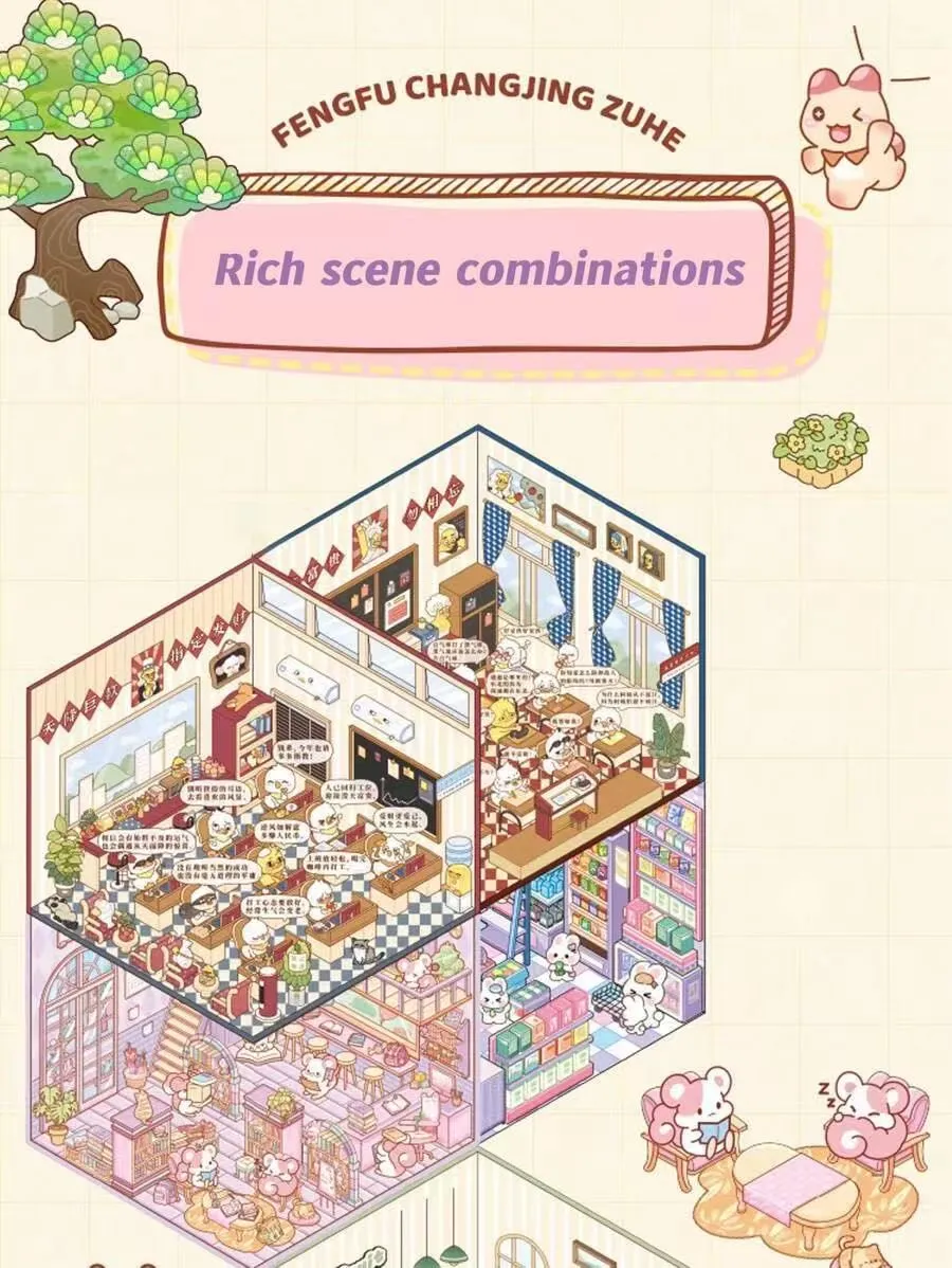 Ця мініатюрна книжка зі сценами — це захоплюючий культурний і творчий продукт своїми руками, ретельно створений нашою компанією. Кожна книга містить 10 унікальних тематичних сцен, які супроводжуються сотнями високоякісних мініатюрних наклейок. Завдяки багатошаровому дизайну та процесу друку високої чіткості він точно відтворює деталі реальних сцен. У процесі складання користувачі можуть зняти стрес, розвинути концентрацію та розкрити свій творчий потенціал для створення єдиних у своєму роді мініатюрних робіт.