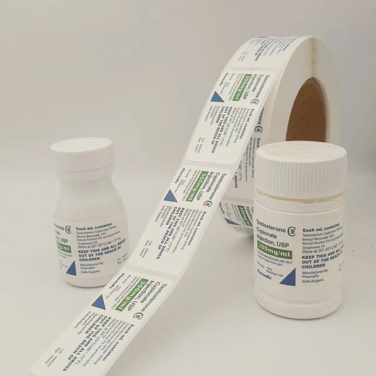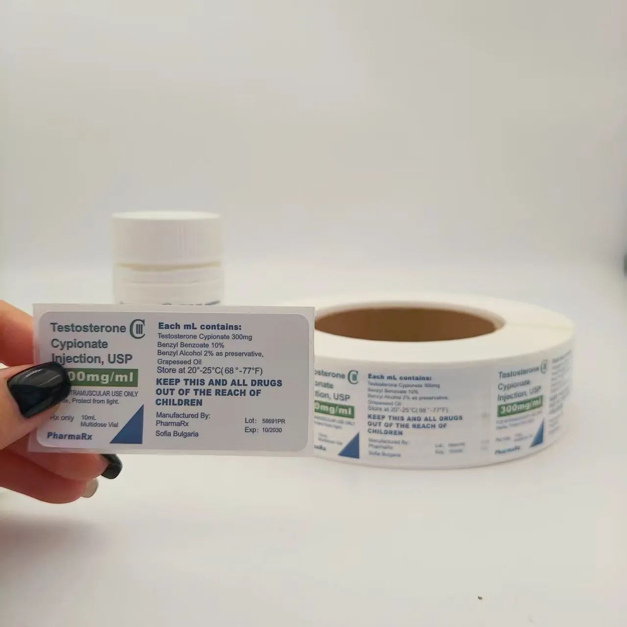 Жирним шрифтом виділені назви препаратів, дозування та інструкція із застосування таблеток. Вторинна інформація, така як відомості про виробництво та попередження, розташована впорядковано, що робить її зручною для швидкого читання. Шрифт етикетки на флаконі з таблетками чіткий і його легко розрізнити, уникаючи впливу химерного дизайну на розпізнавання інформації. Етикетка на флаконі таблеток суворо відповідає місцевим фармацевтичним нормативним стандартам, гарантуючи, що вся необхідна інформація не пропущена, а формат попереджень, протипоказань тощо є стандартизованим. Матеріал етикетки пляшки з таблетками стійкий до тертя та вологостійкий, а також легко відпадає після наклеювання. Розмір відповідає кривизні пляшки, без зморшок або блокування ключової інформації.