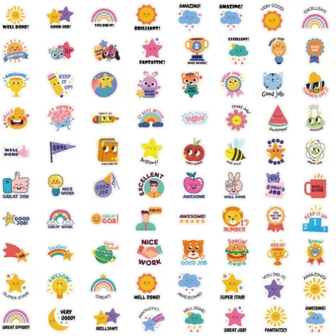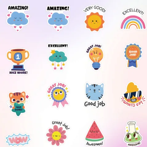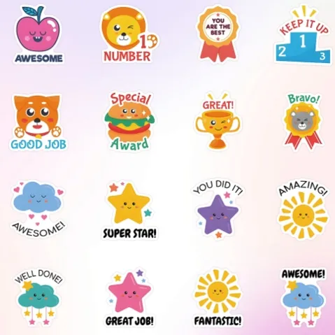 Наклейки нагородження - це те, до чого всі діти прагнуть у дитинстві! Не варто недооцінювати ці наклейки. Ці наклейки можуть бути круглими та маленькими, або їх можна налаштувати в інші розміри та форми. Однак, незалежно від своїх форм, вони відіграють дуже важливу роль у дитинстві дітей! Ми можемо налаштувати деякі візерунки, які дітям подобаються на наклейках нагородження, або слова, які діти насолоджуються чути, наприклад: "Молодці!", "Чудова робота!", "Відмінно!", "Smart!". Це не тільки надає дітям впевненість, але й спонукає їх постійно підтримувати добрі звички.