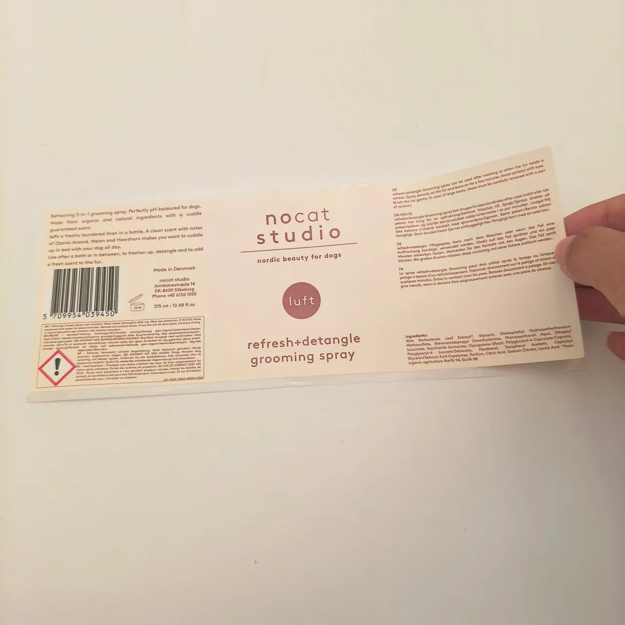 Компанія Jojopack спеціально розробила рішення з високим класом для кондиціонерів для домашніх тварин. Наші етикетки з розпилювальними пляшками виготовлені з водонепроникного та стійкого до сліз, а етикетка продукту може підтримувати яскравий і тривалий колір навіть у вологому середовищі. Мітка містить інформацію, як назва продукту, інгредієнти, інструкції з безпеки, функції та запобіжні заходи, і впорядковано впорядковано, що допомагає бренду підвищити свою візуальну конкурентоспроможність.