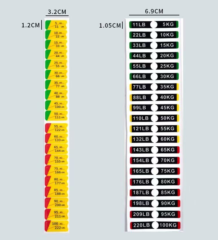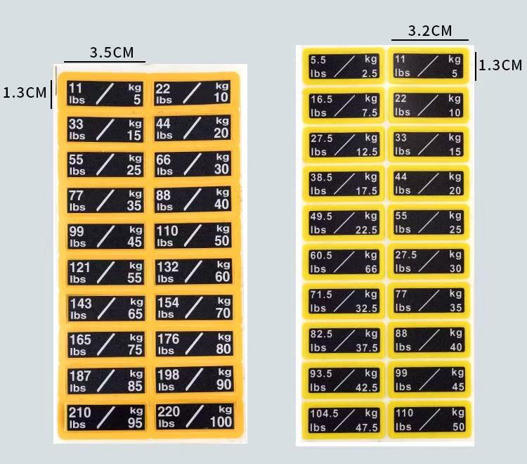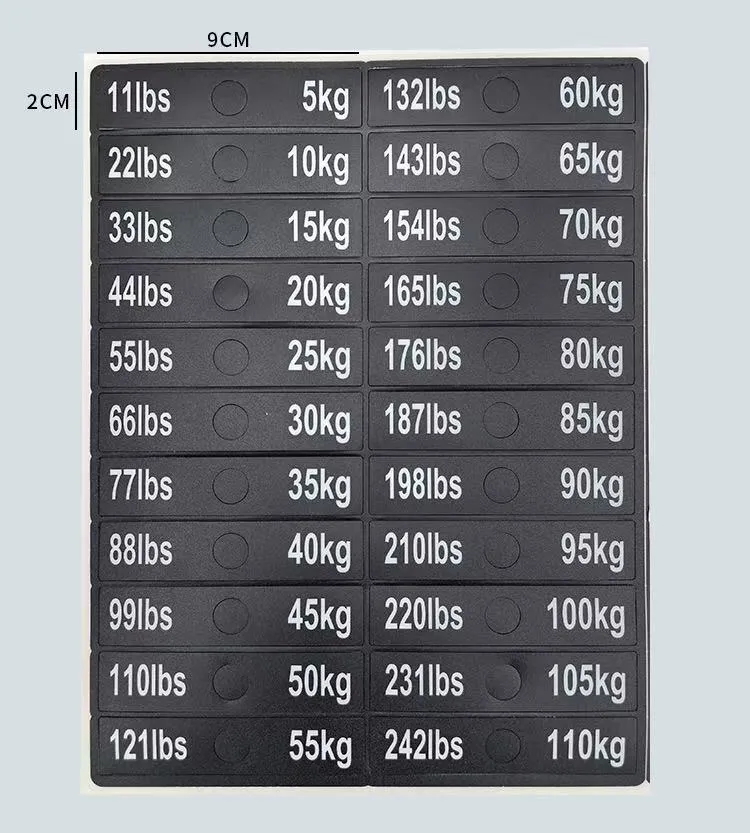 На кожній наклейці чітко позначені значення ваги, що дозволяє користувачам швидко визначати та вибирати блоки ваги, які відповідають їх інтенсивності тренувань, і уникати частого зважування під час тренувань.