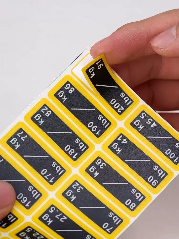 Наклейки з наклейками з блоками ваги від JOJO Pack підходять для різноманітного фітнес-обладнання, такого як гантелі, штанги та штанги. Один набір наклейок може задовольнити потреби маркування різного обладнання, що допомагає зменшити витрати на закупівлю.